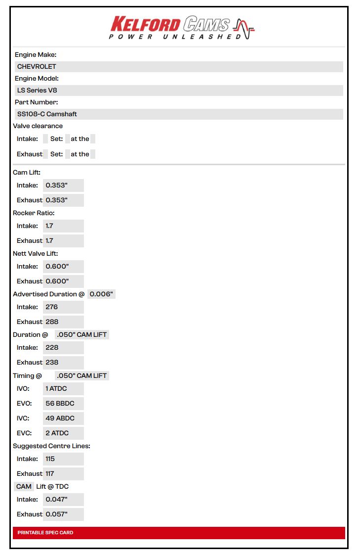 Kelford LS Camshaft SS108-C